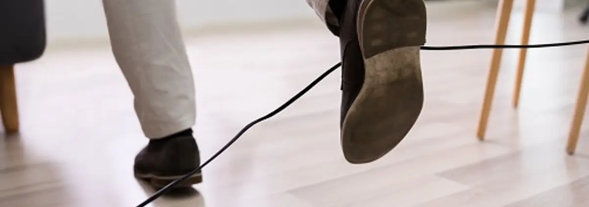 - A trailing cable spotted across a walkway before someone trips